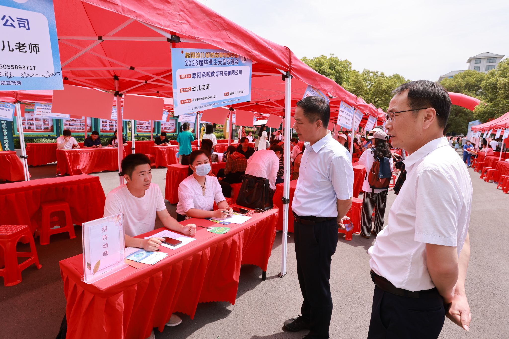 5月19日上午,学校2023届毕业生大型双选会在校内举行。市人大常委会副主任、校党委书记金杰,校党委委员、副校长许宗志到双选会现场与招聘单位、我校求职学生进行走访交流。