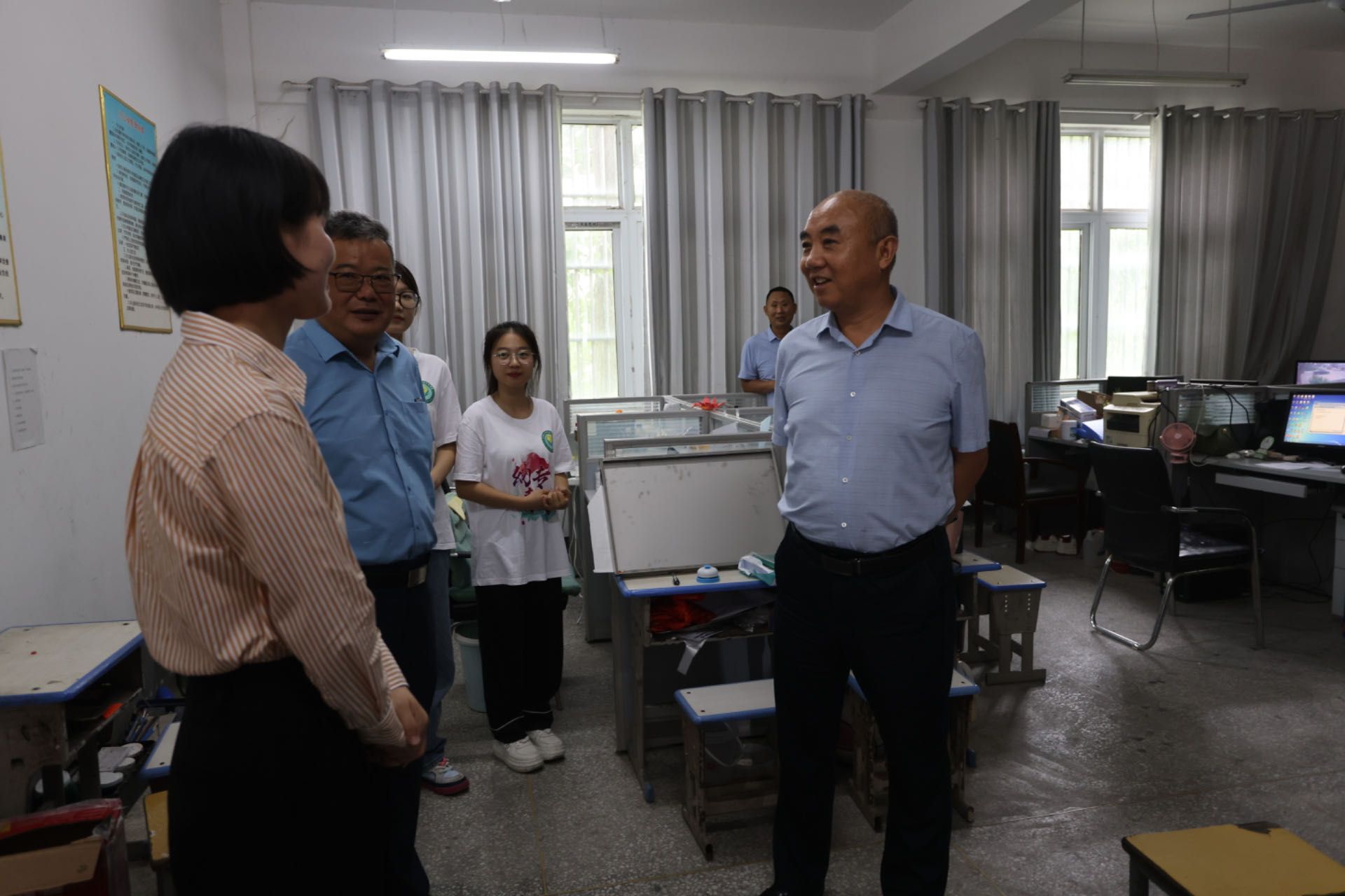 在教学点,于华献与“梦想学院”支教团队师生亲切交谈,详细了解了支教活动开展情况,走进了团队日常生活、工作场所,现场观摩了教学活动。