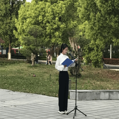 来自2022级学前11班、2023年阜阳市高校青年学生防艾演讲比赛二等奖获得者金雨涵同学做国旗下的演讲。她表示,做奋发有为的技能学前人,应坚定理想信念;做锐意进取的技能学前人,应练就过硬本领;做勇毅前行的技能学前人,应主动担当作为。身为学前人,要在自己的专业领域砥砺深耕,在未来的学习与生活中涵养品德、精进技能,为未来打下坚实的基础。