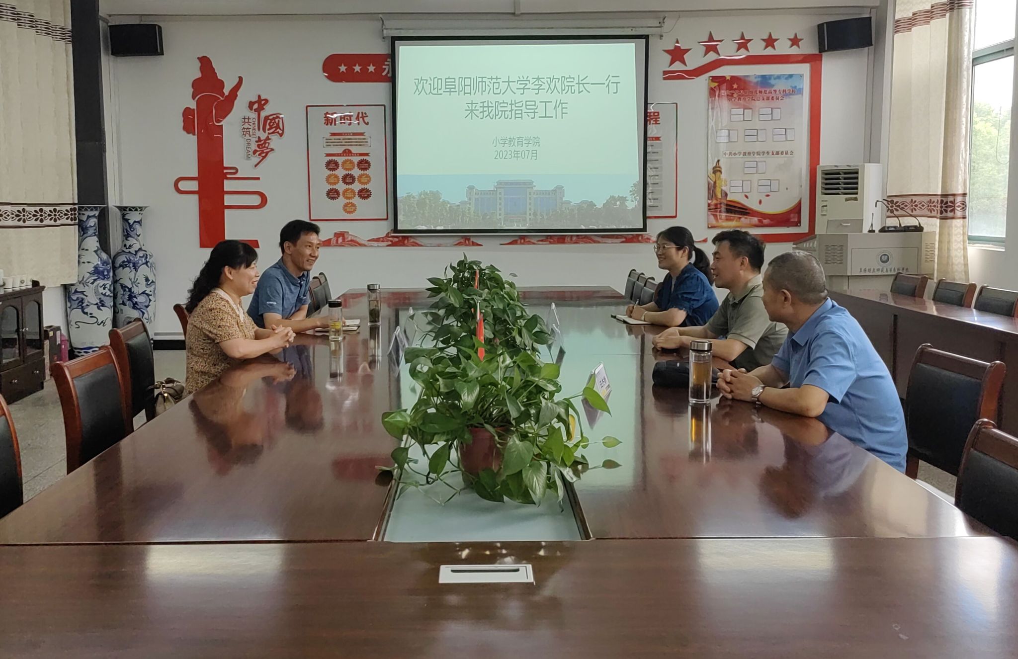 2023年717下午,阜阳师范大学教育学院院长李欢,应邀来我院指导专升本联合培养工作。我院院长郭玉敏、党总支负责人朱启俊行政人员热情接待了来宾。