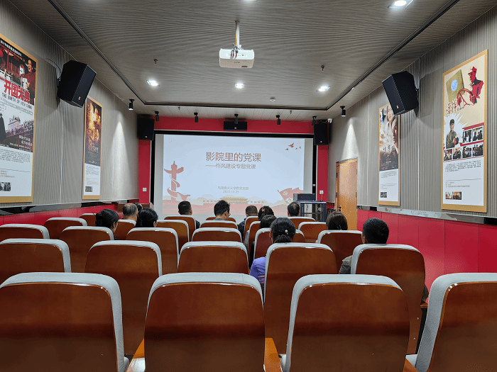 10月25日,马克思主义学院党支部组织全体党员,在学院虚拟仿真思政课体验教学中心的红色影院开展了一次别开生面的主题党日活动。活动通过观影的形式,让大家更深入地理解扫黑除恶的重大主题,进一步增强党员们的责任感和使命感,持续绷紧作风建设这根弦。