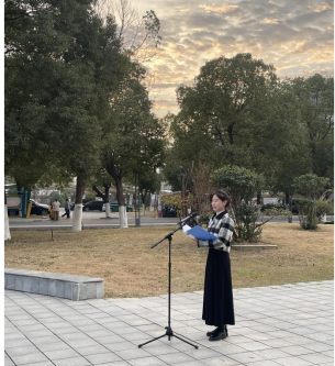 来自2022级幼管3班的王悦悦同学以“挺膺担当,逐梦未来”为主题进行国旗下的演讲。她表示:作为阜幼专青年,要将责任时刻铭记于心,将担当处处落实于行,做一个有责任、勇担当的阜幼专青年,共同铸造阜幼专美好的未来!