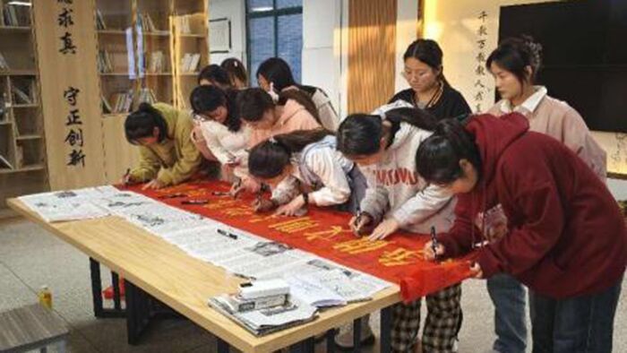 3月20日下午,在文津楼2楼书香翰墨厅举行了“学准则,明规范,争做文明大学生”的签名活动,吸引了众多学生的参与。大家在横幅上庄重地签下自己的名字,并一致表示,作为新时代的大学生,应该自觉学习文明准则,明确行为规范,时刻保持良好的文明素质。
