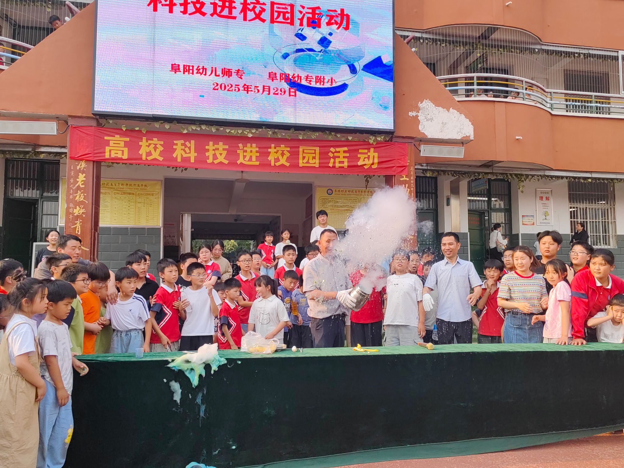 2025年5月24—31日是第二十五个全国科技活动周,为深入贯彻落实科教兴国战略,积极探索党建与业务深度融合新路径,充分发挥统一战线在服务社会、科普育人中的独特优势,在小学教育学院党总支的指导下,教师第二党支部和学生党支部携手民盟阜阳市委员会,于2025年5月29日走进我校附属小学(以下称“附小”),成功举办“科技进校园”活动。附小党总支书记、校长周连友与近500名师生参加展演。活动中,我院10余名师生党员和民盟阜阳市委员会盟员组成了科普先锋队,为附小的同学们开展了多主题、多形式、各具特色、生动而有深度的科普系列活动。