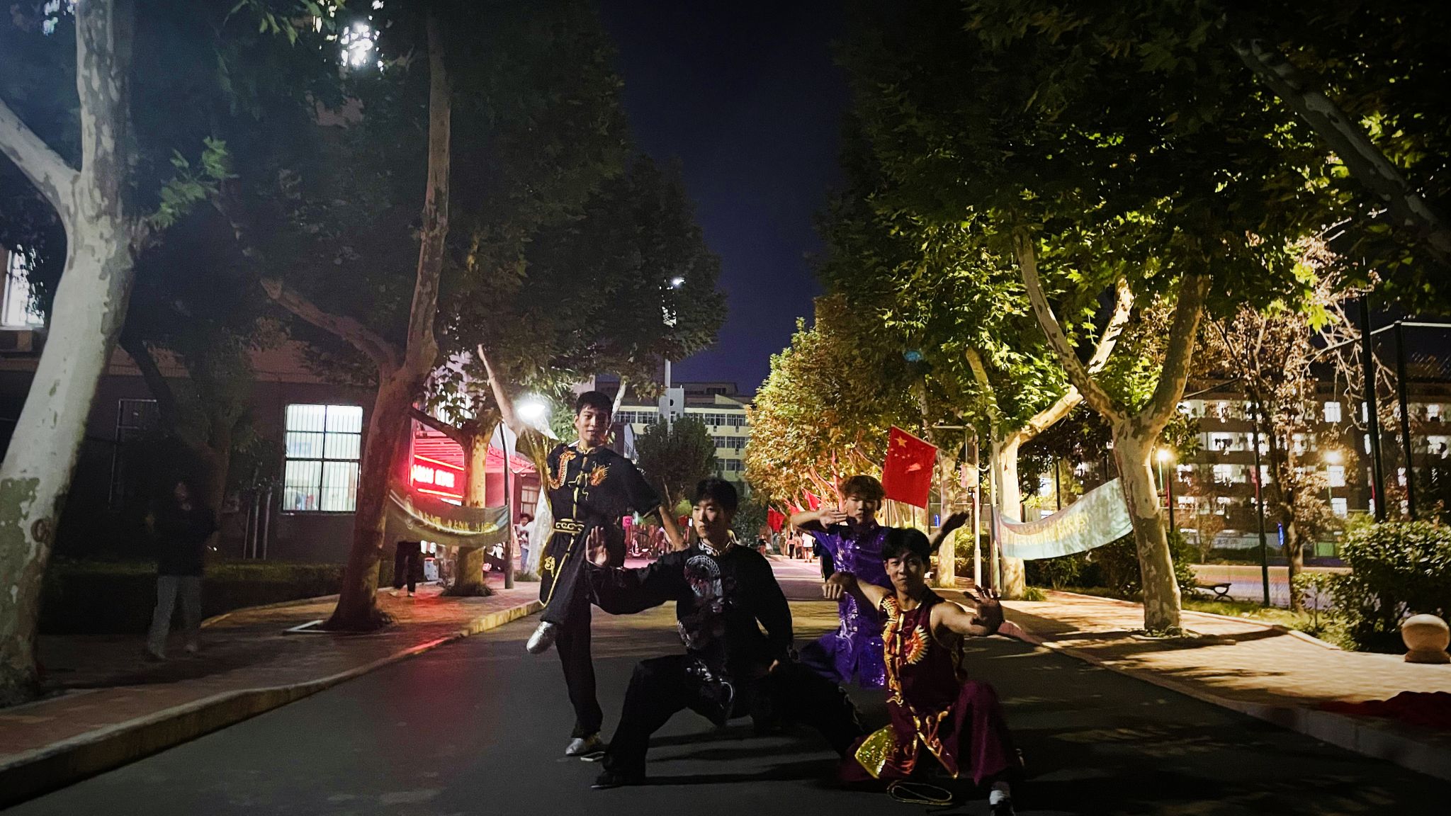 为庆祝新中国成立73周年华诞,树立新时代爱国主义精神,弘扬中华武术,增强国民体质。自10月1日起学校武术社每天在操场举行武术表演活动,为封校的师生带来精彩的中华武术展演,丰富了学生的课余文体活动。