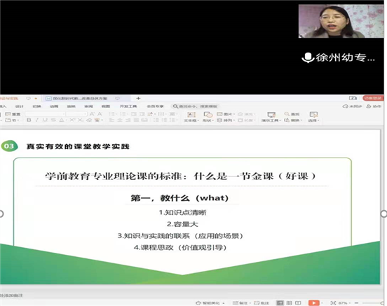 2020年12月9日下午2:30,学前教育学院邀请徐州幼儿师范高等专科学校学前与特殊教育学院副院长刘曲开展“信息时代学前教育专业理论课程的建设与实践”专题讲座,学院全体教师在行知楼413通过腾讯会议APP参加本次学习。
