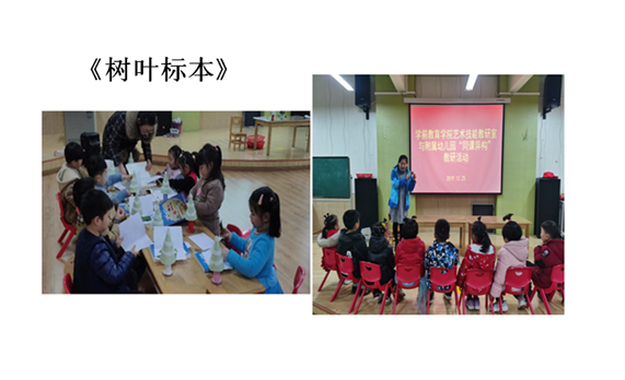 2019年12月25日下午3:00又进行了美术领域的“同课异构”教学观摩活动,由学前教育学院艺术教研室的王丽莎老师与附属幼儿园的周翠翠老师参加。活动主题是《树叶标本》,两位老师以树叶标本为基本素材带着幼儿制作了美丽的书签和圣诞树。
