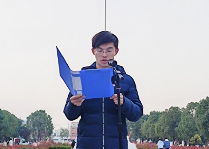 本次升旗仪式分为升国旗奏唱国歌、国旗下演讲和主题微团课三项内容。此次升旗仪式由程诚主持。