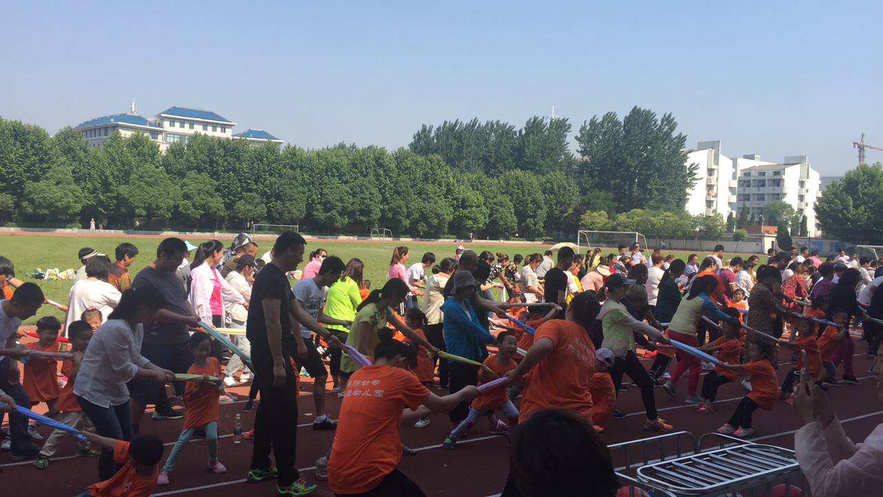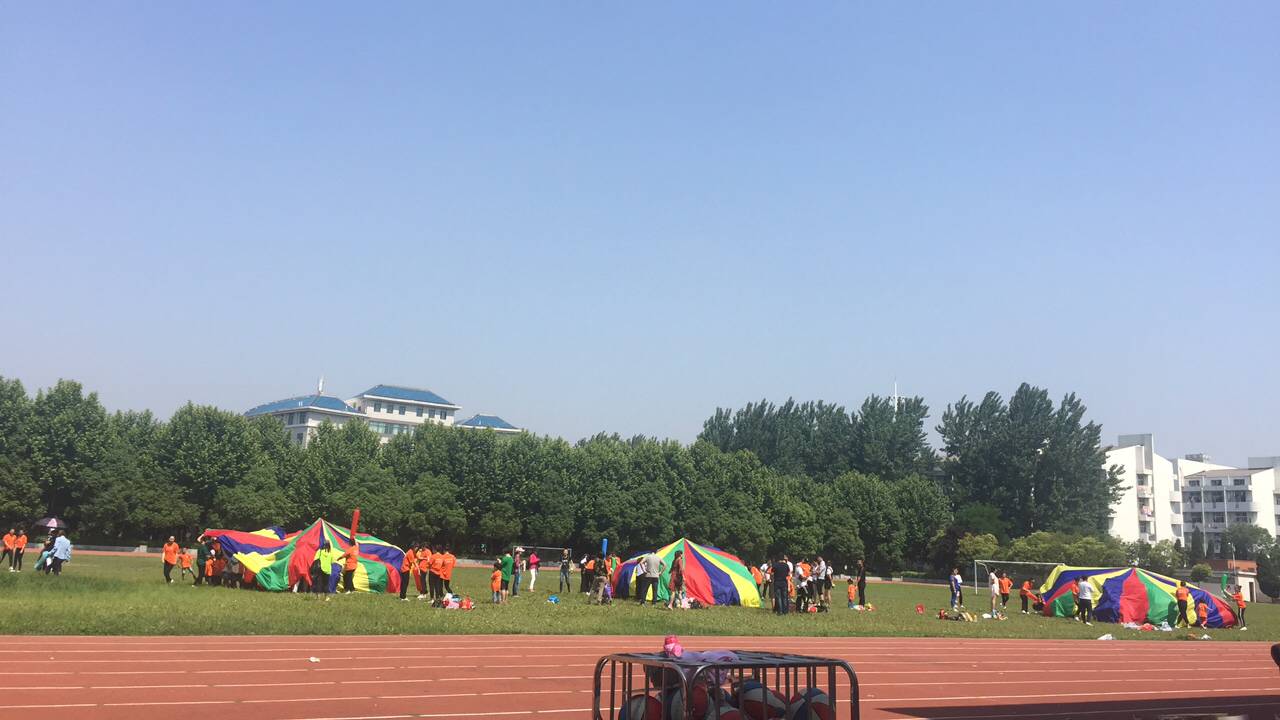 随着游戏主持人的一声令下,运动会于9:40正式拉开帷幕。作为观看的我们也早已在观看台上等候。在亲子游戏中有拔河比赛,家长与孩子们进行了一场所谓的力量的较量,紧接着家长与孩子们又开始了激烈的坦克大战车轮滚滚的游戏,这充分考验了家长与孩子间的协调配合的能力,整个操场洋溢着家长与孩子们的欢声笑语。孩子和家长都热情地参与其中,就像是大朋友与小朋友之间的游戏,其中最为精彩的,就要数彩虹伞了。家长们手持彩虹伞,小朋友和家长们都原地蹲下手抓彩虹伞,小海浪……抖动彩虹伞,随之站起来;大海捞……抖动彩虹伞……彩虹伞那五颜六色的大海浪把毛巾丢进彩虹伞里,随着彩虹伞的痘痘毛巾,随之颤动,漂亮极了。
