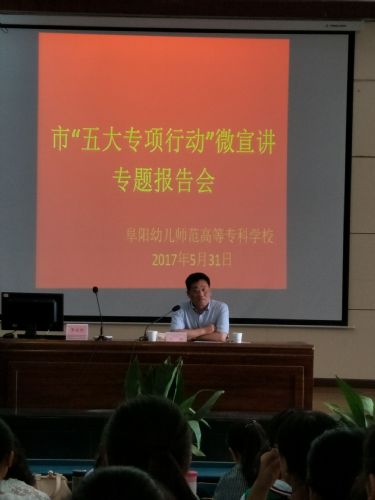 本次五大专项行动微宣讲学术报告会在老师们和同学们的认真聆听中圆满结束,希望通过此次报告会,让每个同学都能够为五大专项行动做出积极的宣传,为五大专项的建设做出自己的一份力量。以每个人的不懈努力推动我市的大跨越大发展,共建大美阜阳。