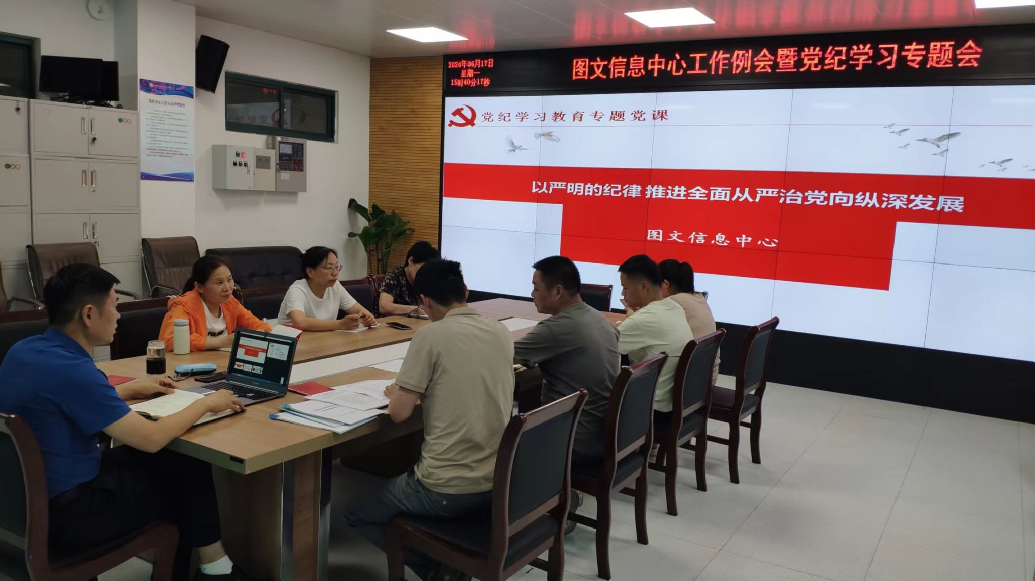 为深入贯彻党的二十大精神,进一步加强党员同志纪律教育,增强党员同志廉洁自律意识,6月17日,图文信息中心负责人王志强《以严明的纪律推进全面从严治党向纵深发展》为题,为图文信息中心全体党员讲授党纪学习教育专题党课,部门全体党员参加。